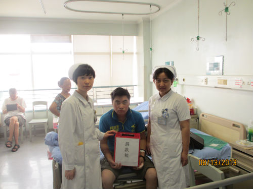 护士同仁们同情该患者的遭遇,更佩服他的勤劳勇敢,希望自己小小的爱心能让不幸的他感受到社会的大爱,重燃战胜疾病走向健康的信心!