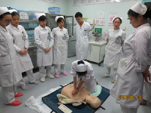 此次培训由唐梦琳护士长组织,科室业务骨干张顺基和曾佳蓉两位护师指导,内容包括CPR基本知识、现场示范和个人操作练习。在示范阶段,张顺基和曾佳蓉两位护师以“2010年心肺复苏指南”为模板,详细讲解了CPR操作流程和分解步骤,并在模拟人身上进行现场示范,对容易出错的环节进行了多次强调。在操作练习阶段,每位护士都积级主动在模拟人身上进行操作演练,大家相互学习,并由业务骨干从旁指导,针对操作中存在的不规范运动进行纠正,以达到人人过关。