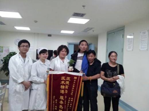为了表示对消化内科医护人员的感谢,出院当天尼玛在其父亲的陪同下,特地送来了绿色盆摘装饰病房。为医护人员献上洁白的哈达,赠送锦旗和感谢信,表达自己的谢意。他说“我对住院期间所有照顾过我、关心过我的医护人员深表感谢,感谢你们的辛勤付出和细心照顾,因为有你们,所以才有现在的我!”