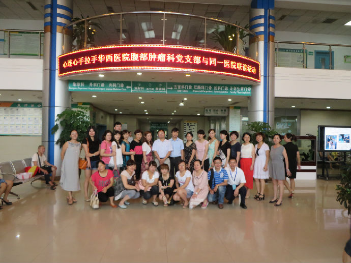 腹部肿瘤科党支部与彭州市同一医院党支部进行了主题为“心连心、手拉手”的交流学习座谈会。会上,支部书记李志平教授以“中国梦”为主题作了专题教育报告,深刻解读了党中央十八大有关“中国梦”的精神。随后,腹部肿瘤科护士叶道丽向大家演示了“2013心肺复苏术”,使党员同志也同时学习了临床专业技能。