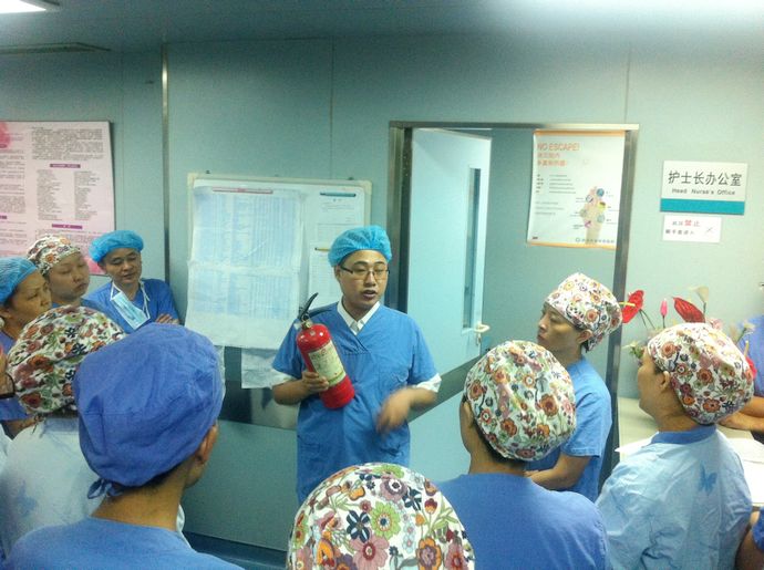 近期,全国发生了多起安全生产火灾事故,如黑龙江中储粮林甸直属库发生火灾、吉林省德惠市吉林宝源丰禽业有限公司发生液氨爆炸火灾事故。这几起事故,都直接造成了重大的人员伤亡和财产损失,造成了极坏的社会影响。同时,按照三甲优质医院评审和人员密集场所对安全管理要求,也为进一步提高我院教职员工自防自救、组织人员疏散的处置能力。在曾勇副院长统一部署下,安全保卫部认真组织和落实,治安消防科抽调业务骨干组成9个培训小组,走进科室,走进临床一线。为了培训和临床工作两不误,针对临床工作实际,利用每周医院电视晨会或科室时间方便情况下,从6月27日起逐一安排人员到全院各临床医技科室进行治安消防培训和基础知识普及。