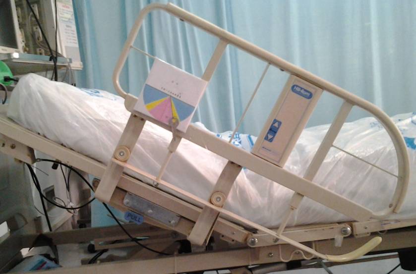 呼吸机相关肺炎(VAP)是ICU机械通气患者最严重的医院获得性感染之一。循证医学证实,床头抬高30-45°可预防和减少VAP的发生。目前,临床护士大多采用目测法或经验法抬高床头,但准确率较差。鉴于此,重症医学科小儿ICU陈丽君护士设计出一种床头抬高30或45度的钥匙量角器,并将之固定于床头,当需要抬高床头时,直接按住床头上下调节按钮,当钥匙吊坠线下垂达到30或45度刻度线时,即表示床头达到理想的高度,一目了然,避免目测法和经验法的盲目性,提高护理工作的准确性和科学性,并且测量简单,操作简便。此外,该量角器制作简单,成本低廉,安装固定方便,可一直保留在床头,永久实用;钥匙图被涂成红、黄、绿3种颜色,美观大方,尺寸规范,有利于构建温馨、规范病房,值得进一步推广和应用。