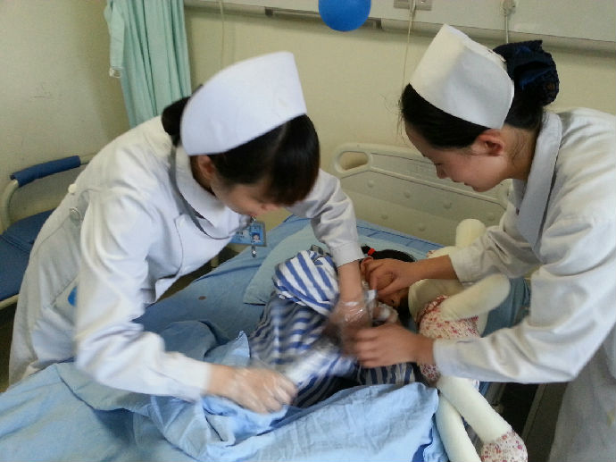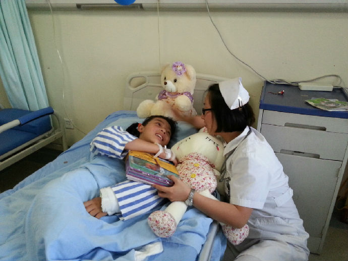 小思怡刚转回病房时病情依然严重:呼之不应,失去语言能力,右腿被截肢,不能自主进食,需要依靠定时管饲才能维持生命。为了防止交叉感染,小儿外科专门为小思怡腾出了单人间,进行了保护性隔离。为了小思怡能早日自主进食,开口说话,也让焦虑的父母能够更加安心,团支部书记冯黎维带领优质护理先锋队再次出发,每日指定高年资护士查看病情后制定个体化的护理计划,内容涉及康复锻炼、饮食、疼痛评估等各方面内容。组织号召先锋队成员利用休息时间,一有空闲就跟小思怡讲故事,聊天,希望能刺激小思怡的听觉和语言功能,使她能早日清醒过来。在大家的共同努力下,一周后,小思怡的意识终于恢复了,虽不能开口说话及进食,但已能自主取物。于是先锋队成员又开始了第二阶段的努力。经常将各种食物递至小思怡的手中,鼓励自主进食,几天后,主管医生尝试取下胃管,大家惊喜的发现,小思怡已经能自主进食了。除此以外先锋队成员还每天和家长及爱心志愿者一起为小思怡进行功能锻炼。