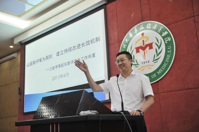 会上,李为民院长首先介绍了国内、外医院评审现状与发展,依据我院此次医院年度评价的总体思路,分别对评审冲刺阶段工作如推进评审准备实施的组织架构、准备的重点工作、时间进度进行了统一安排与部署。