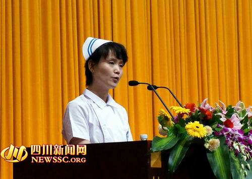 5月31日,中共四川省委宣传部、成都军区政治部在成都金牛宾馆大礼堂联合举行了首场“4.20”芦山强烈地震抗震救灾先进事迹报告会。来自抗震救灾一线先进事迹报告团的6位成员用自己的亲身经历,讲述了在抗震救灾斗争中的故事。四川省和成都市市直部门干部代表,学校师生、企业员工及社会各界代表近千人聆听了报告会。省委常委、宣传部长吴靖平,成都军区政治部副主任何平,省军区政治部主任谢武忠亲切接见了报告团全体成员。会上,我院护理部质控科科长朱红代表华西医院做了事迹报告,她报告的题目是《华西没有辜负总理的嘱托》。