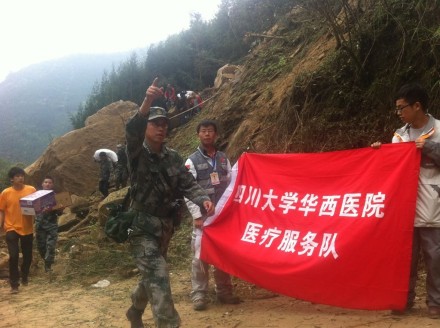 第三医疗队由7名党员和5名入党积极分子组成。地震发生后,医疗队的队员们自发的赶回医院,纷纷主动申请到灾区一线: 医疗队队长、临时党支部书记钟刚当时正在参加学术会议,立即中断会议赶回医院; 医疗队队员、党员黄斌老家在邛崃,孩子只有一岁,但他顾不上安慰地震中受到惊吓的父母和妻儿主动赶到了医院; 医疗队队员、党员肖海涛妻子怀孕39周,即将临产,但他毅然的赶到了医院; 医疗队队员、党员王显丁妻子怀孕四个月、妊娠反应严重,稍稍安置后他便赶到了医院; 医疗队队员、党员周勇父亲刚好七十大寿,可是“忠孝不能两全”,他依然冲到了第一线; 医疗队队员、党员吴丹、廖天治第一时间赶到病房主动请战,要求到灾区一线最急需的地方去; 。。。。。。 正是这样一群充满着“大爱”的党员组成了英雄的第三医疗队临时党支部。 空降双石 双石镇是芦山县山区大镇,地势险要“十里悬崖一线天”。强烈的地震,彻底破坏了该镇与外界联络的公路、通信设施和饮用水源,全镇8000多人陷入了无水、无电、与外界失去联系的状况,持续的余震与塌方让这个两山之间的小镇岌岌可危,双石成为了生命的孤岛。 4月21日11点,医疗队乘成都空军陆航团直升机空降双石,队员们背着沉重的医疗物资急行军进驻双石卫生院,他们成为第一支赶到双石的救援队伍。 “赶快准备好接治伤员”!顾不上一路的劳累,临时党支部组织医疗队员和卫生院的医务人员一道迅速布置好了救治区。11点19分,医疗队接治了第一位地震伤员。在这个生命的孤岛,人们第一次感受到了关怀和希望。 这一天,医疗队一直战斗到了深夜,经历了9次大型的余震,始终坚持。由于直升机承载有限,为了尽可能的多带医疗物资,医疗队队员们除了工作服和电筒以外几乎没有多带任何的生活用品,他们饿了将就吃一碗稀饭,困了就在冰冷的地上两三个人就着一床棉被将就着睡一觉。 支部就是核心,党员就是先锋 通讯中断,和后方两天没有联系,医疗队临时党支部成为了战时的指挥中枢。临时党支部迅速召开第一次支部会, “党员就应当做表率”、“作为唯一的救援队,我们不仅代表自己,还代表着华西医院和党的形象”、“临时党支部是我们领导的核心”。。。。。。意见高度统一,意志无比坚定。随后的日子里,临时党支部每天召开总结碰头会,对每天的工作进行总结分析、部署第二天的工作内容,临时党支部成为了战斗的核心。 “石凤村有一名老人伤势很重”。到达的当天下午医疗队得到了这样的消息。石凤村是双石镇的行政村之一,交通、通信中断,村里情况不明,是孤岛中的孤岛。支部书记钟刚主动站了出来,“党员就应当是先锋”!他和党员吴丹一道奔赴石凤村。由于不知道老人的准确位置,他们沿着悬崖摸索着寻找着,余震和泥泞让他们随时有踩空的危险。“我们不能放弃”,在相当时间的寻找后,终于在河边一处窝棚里找到了头部创伤、踝骨骨折的老人。简单的救治后,钟刚和吴丹在当地群众的支援下,艰难的将老人转运到了镇上,经过医疗队的有效救治,老人生命指征恢复了平稳。 主动出击,不留下一寸孤岛 石凤村、围塔村和西川村是双石镇失去联系的三个行政村,离镇上最远的有20公里,全都要靠步行才能进入,目前尚没有任何救援队进入过这三个村。虽然医疗队接到的指令是驻扎双石镇,然而“最危险的地方,就是最需要我们的地方”。4月22日,临时党支部组成了以7名党员为核心的四支医疗队,分别奔赴石凤村、围塔村、西川村和镇上各灾民安置点。 虽然前进的道路十分危险,每人还要背着30多斤重的医疗用品,但队员们没有丝毫的畏惧。党员王显丁、周勇所率领的医疗组去往道路最为艰险的西川村,途中要徒步经过5公里的塌方带,塌方后的山坡根本无路可寻,塌方形成的碎石让人难以维持平衡,稍有不慎或是发生余震就会跌落三十多米深的悬崖。但意外还是发生了,王显丁摔了一跤,爬起来时已是满手鲜血。但他丝毫也没有顾及手上的伤口,继续前行,他知道前方还有更多身处险境期盼着他们的灾民。 战胜了一路的艰险,队员们在各村组织村医建立医疗点、救治伤员、分发药品、开展早期的防疫工作。。。。。。“虽然很辛苦,但我们为他们解决了实际的问题,做了些实事,我们很满足”。这一天,在无比的艰辛和危险中,他们走遍了双石镇的三个村和六个安置点,他们救治了300多名伤员,在双石镇建立起了一张紧急医疗网,从此双石镇不再有生命的孤岛。 4月25日,医疗队接到上级指令与其它医疗队交接返程。双石的群众们闻讯自发的赶来,他们要来送他们的亲人,从双石出发一路上群众们举着横幅、打着牌子,他们用他们最真心的话语表达着对第三医疗队的感谢和敬意。 从4月21日到25日,华西医院第三医疗队是第一支到达生命孤岛双石镇,也是唯一一支一直坚持战斗在当地救灾前线的救援队。他们用坚持和努力,克服重重困难,先后救治了680多名伤员,真正践行了“一名党员就是一面旗帜”。4月24日,医疗队两名表现突出的入党积极分子何谦和陈弟洪在临时党支部全体党员的见证下,“火线”加入中国共产党,庄严的誓词和他们坚定的信念回荡在灾区的每一个角落,鲜红的党旗在灾区高高飘扬!!! |