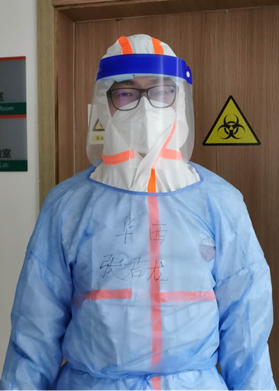 副主任技师张君龙作为本次新整合的华西公卫中心新冠检测组技术组长,到岗后立即组织华西团队和公卫团队梳理工作流程,参加临床病案讨论及时沟通检验与临床,在华西应斌武主任、公卫李青峰主任共同带领下,经两院设备物资部的协调支持,迅速调配检验急需的设备和试剂,不断新开展急需的检验项目,从应急和质量上全面支撑临床,与公卫团队并肩作战在新冠的实验室检测一线。