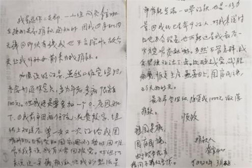 “以前组织上一次次给我帮助,我有义务回报党,哪怕是能多添一个口罩的款,也是一份力量。虽然我已经奔9了,我会坚强的活下去,迎接我党战胜病魔、恢复生产、蒸蒸日上、国富民强的大好时光。”