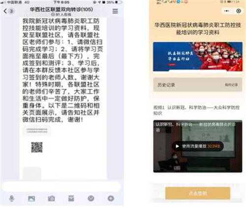 同时,联盟采用了线下骨干培养+线上全员视频培训的方式,以最快速度组织开展全面培训,先后对成华区援鄂医疗后备队、联盟技术骨干、各基层医疗机构一线工作人员、医护人员及后勤员工等共800余人开展了新型冠状病毒防控知识、职业防护、医院感染的同质化培训,包括联盟内政策解读、应急方案、防治流程的一体化、全方位的联动机制等,为抗击新冠肺炎贡献“华西—成华联盟”力量,共筑抗疫基层网底。