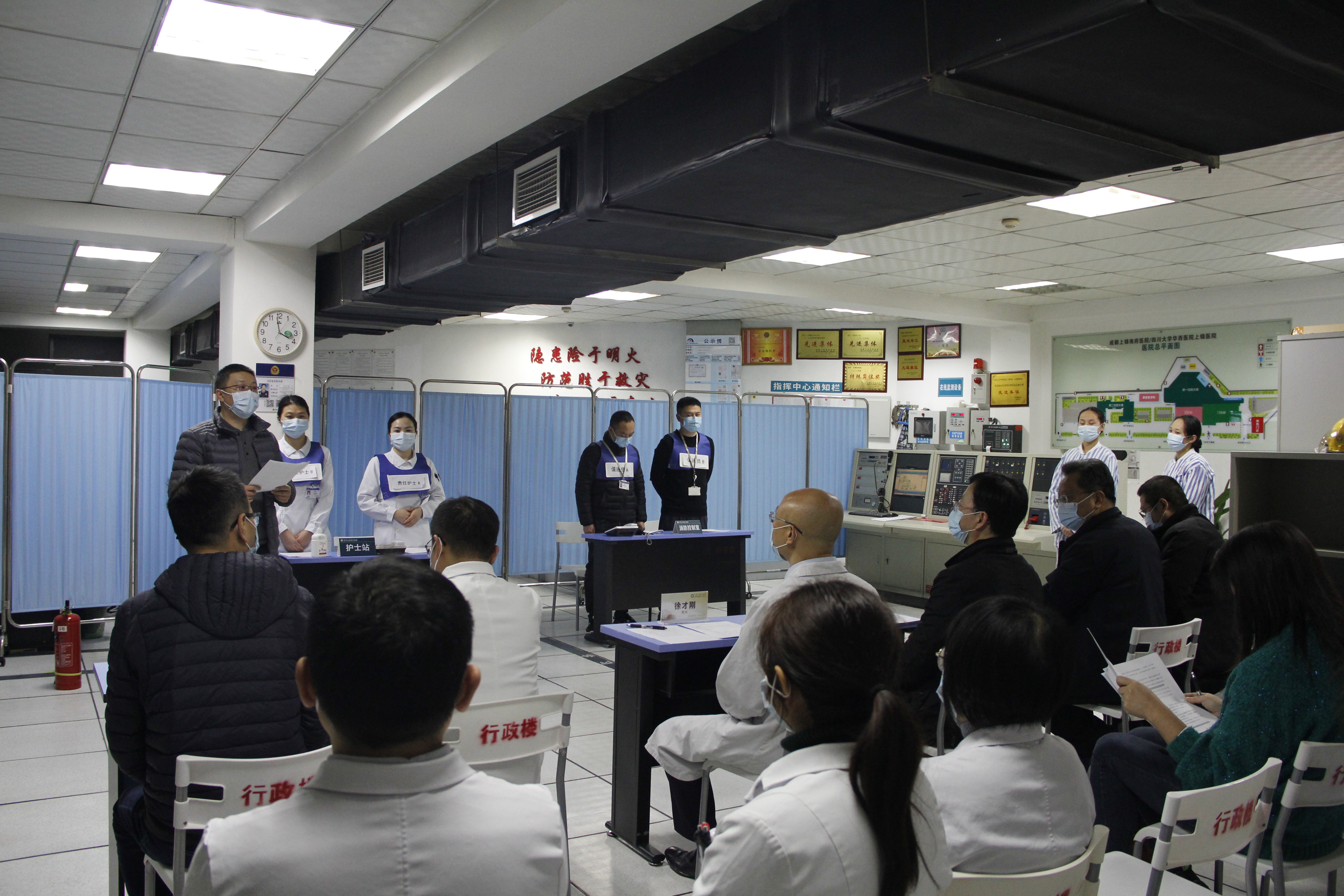 为提高医院处置突发消防事件的能力,12月7日,我院在指挥中心组织开展消防应急演练活动。程述森书记、徐才刚院长等在家院领导,各职能部门及部分临床科室负责人共30余人参加演练。