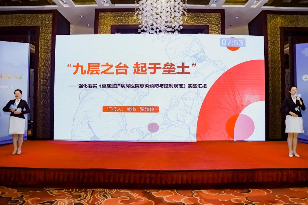我院比赛案例紧扣国家感控标准,围绕《重症监护病房医院感染预防与控制规范》严格对标、贯标、达标,以现身说法,分享在ICU院内感染防控中践行国家标准规范取得的实战经验,充分体现ICU感控成效来源于医院高度重视、多学科/多部门合作协作、科室全体成员主动执行。此次竞赛由ICU历经多次实战、具有丰富经验的副护士长黄梅、感控护士罗娅玲代表我院参加半决赛。比赛前期,我院感控团队充分发挥团队力量,对竞赛PPT的内容、数据、格式、细节等进行认真讨论、仔细推敲和修改,为使演讲者能顺利、圆满完成演讲,我院多次组织开展试演讲,邀请院内专家对演讲PPT、演讲形式等进行指导。半决赛现场,黄梅老师、罗娅玲老师以饱满精神风貌、声情并茂地精彩演讲赢得满堂掌声,顺利完成国家感控标准案例汇报。