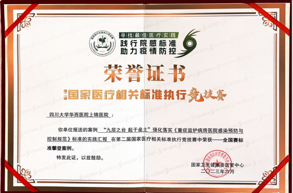 6月15日,由国家卫健委医管中心主办的第二届国家医疗相关标准执行竞技赛在北京举行,我院参赛案例《九层之台 起于垒土---强化落实<重症监护病房医院感染预防与控制规范>》从全国5000余个案例中脱颖而出,进入半决赛,经过激烈角逐,我院案例荣获“标准案例攀登奖项”。