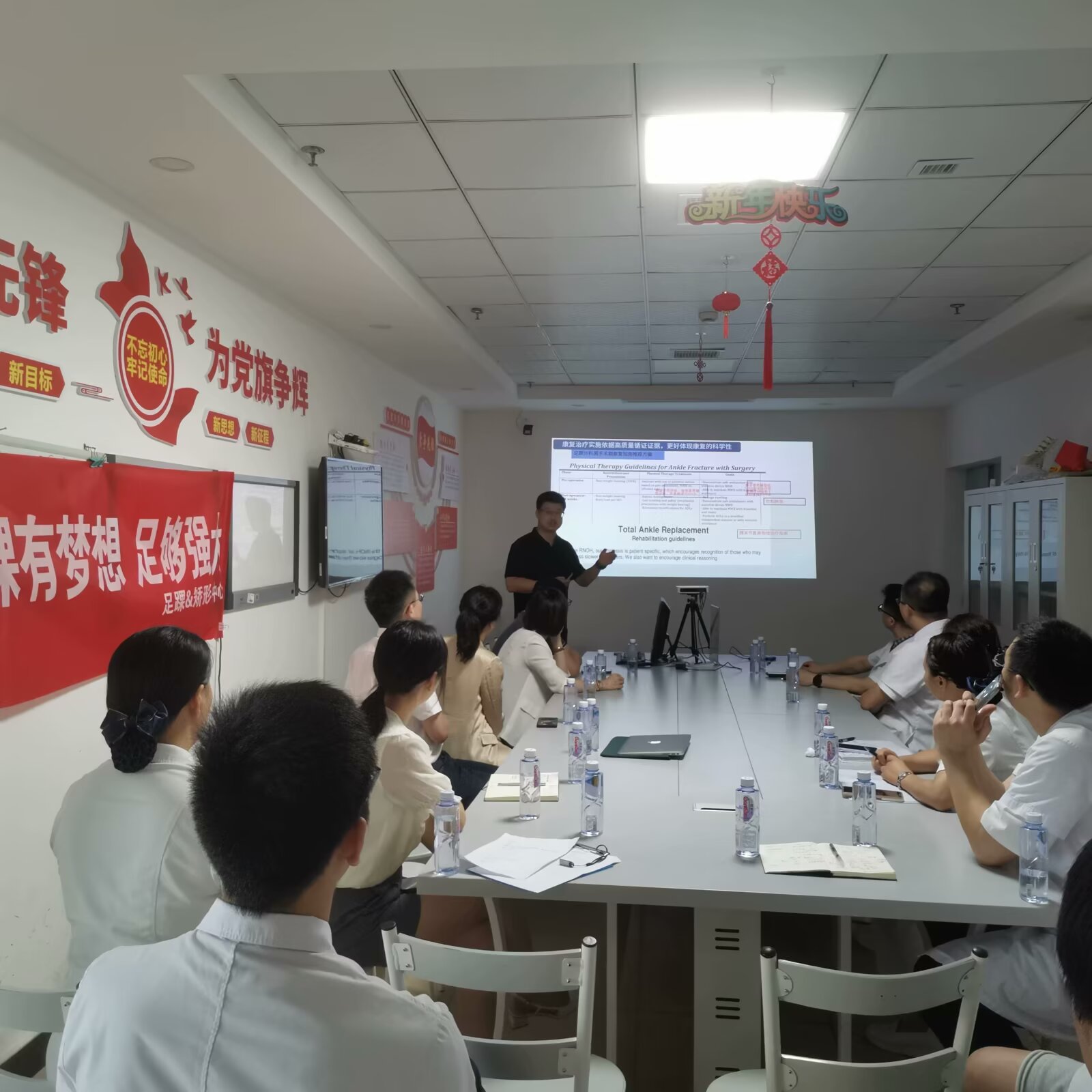 本次活动主题为“踝”有梦想“足”够强大,也是我院足踝&矫形中心成立以来首次开展华西医院骨科联盟单位的医护康一体的线下交流活动。首先,我院骨科陈宇医师分享了对夏科氏足、糖尿病足的诊疗经验,尹诗九医师参与平足患儿疑难病例讨论。随后,我院康复医学科孟伟以《华西足踝康复治疗》为主题展开了关于足踝康复的专题讲座。接着,我院骨科彭琪护士长从护理管理、医护协作方面展开面对面交流,黄丽先老师以优质护理服务的实施开展及疼痛管理方面进行了专题讲座。