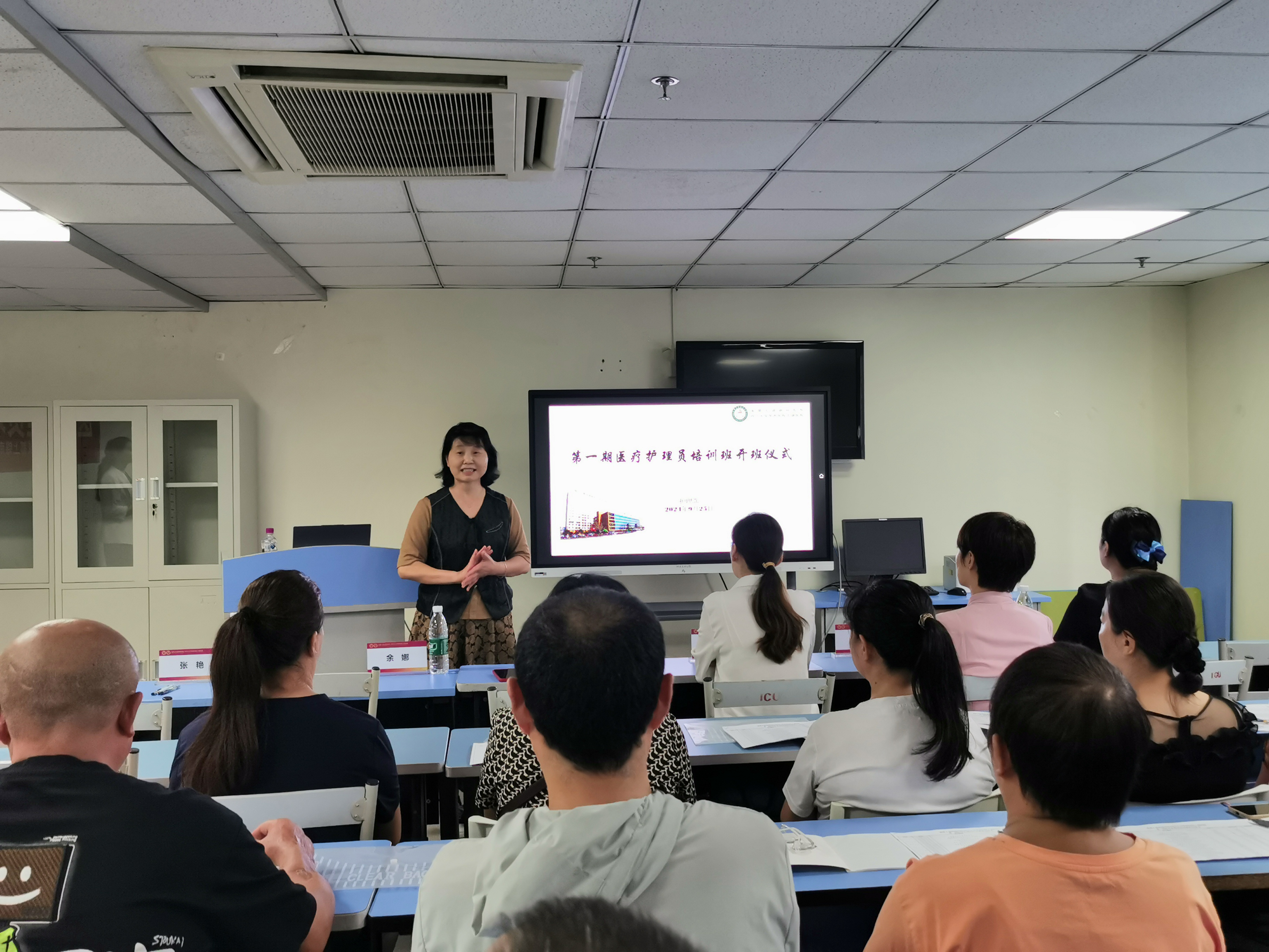 为进一步落实《关于切实加强医疗护理员培训与规范管理工作的通知》与《四川省医疗护理员培训工作方案(试行)》等相关要求,加强医疗护理员专业技能与服务能力。9月25日,我院组织的第一期医疗护理员培训班正式开班,护理部主任廖燕,医疗护理员管理小组成员以及15名学员参加了开班仪式,开班仪式由护理综合科科长余娜主持。