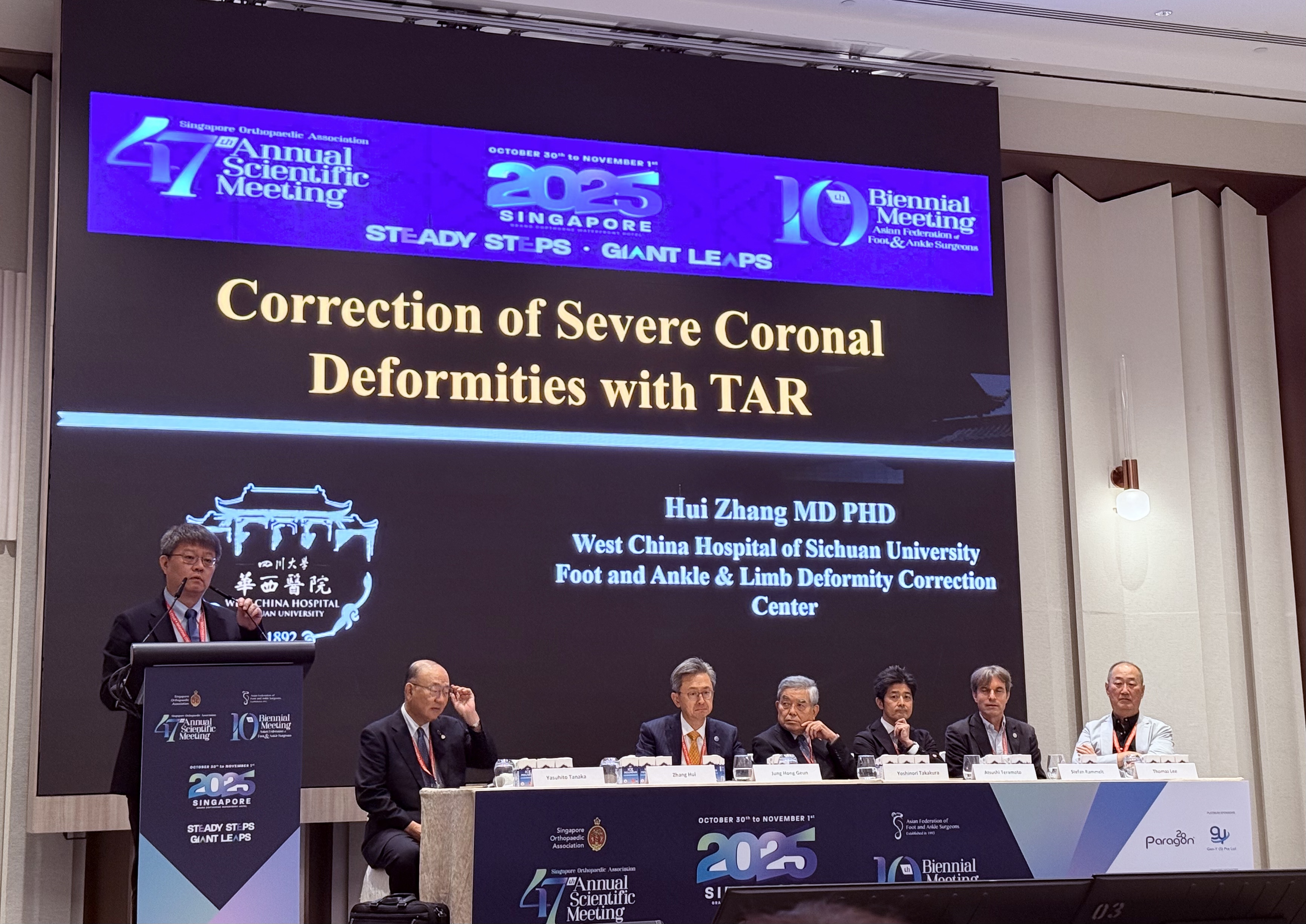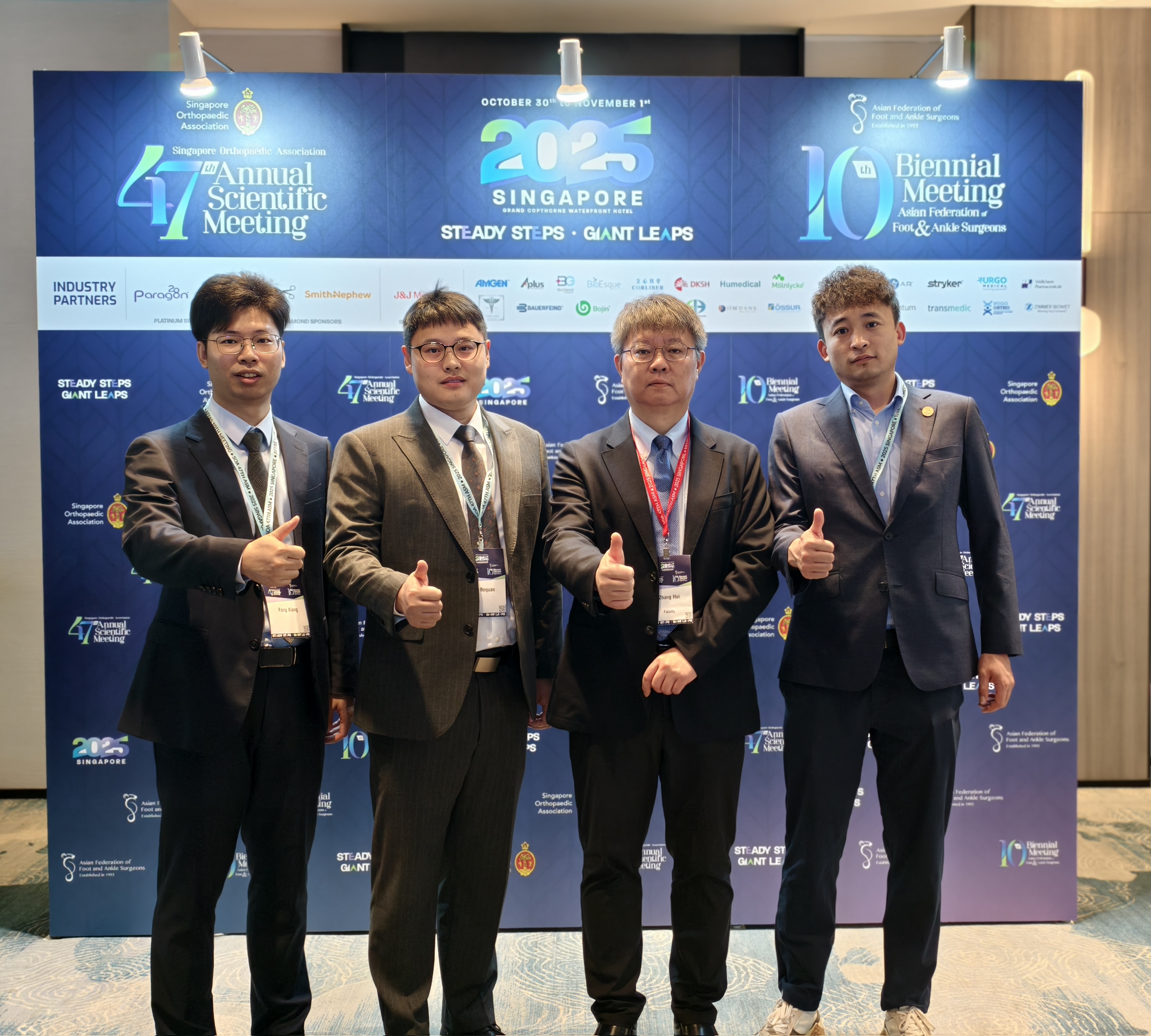 10月30日至11月1日,新加坡骨科协会第47届年会暨亚洲足踝外科医师联合会第10届双年会在新加坡盛大举行。作为全球足踝外科领域极具影响力的学术盛会,本次会议汇聚了世界各地的顶尖专家学者。我院足踝外科与肢体矫形中心张晖主任团队凭借卓越的专业实力和突出的科研成果应邀参会,共同探讨骨科医学的最新进展和前沿技术。