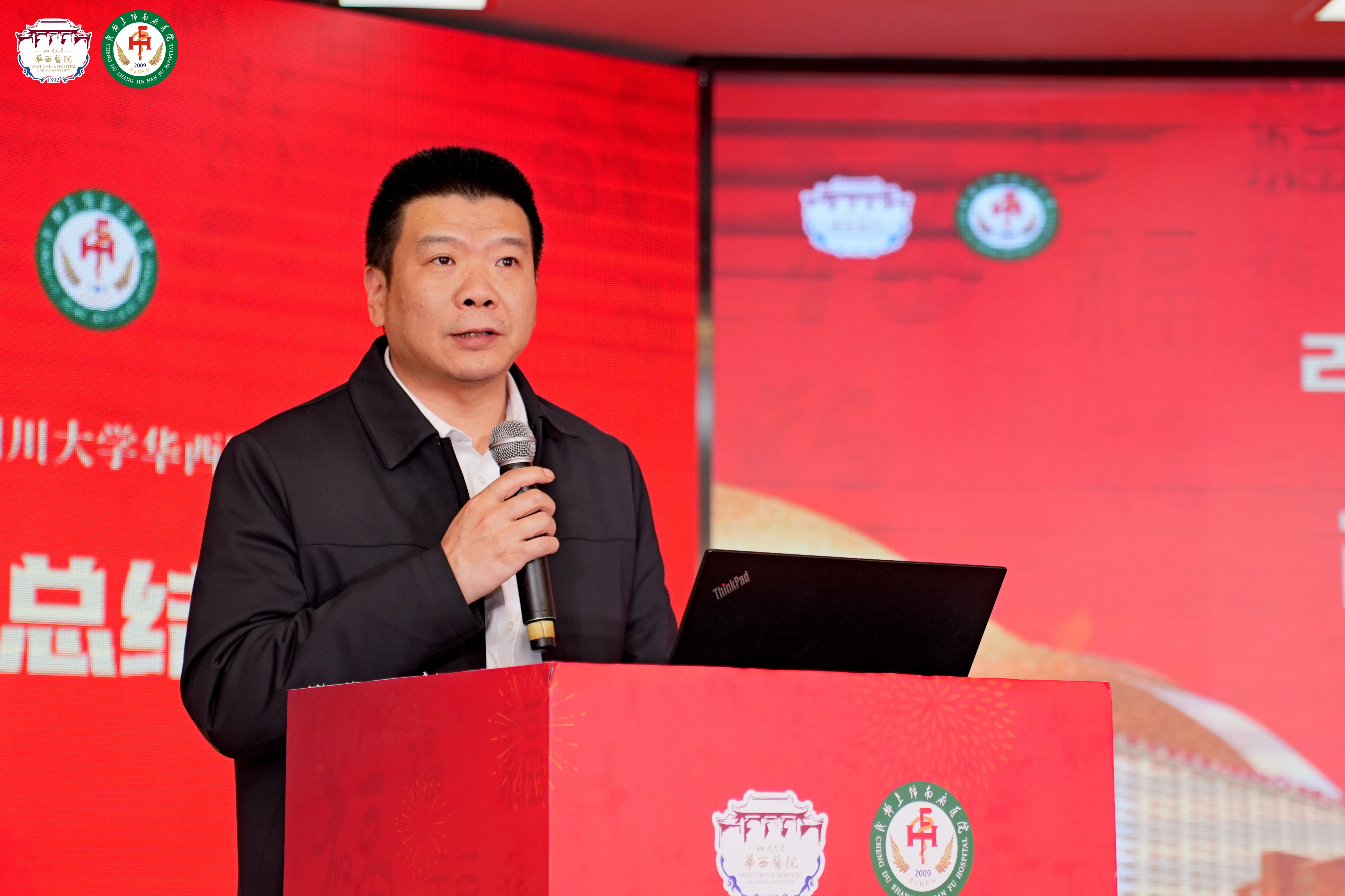 程述森书记在总结讲话中强调,上锦医院作为华西医院第一家全托管医院,始终坚持公益属性,坚持与华西本部一体化管理。针对医院当前面临的新机遇新挑战,程书记提出四点要求:一是及时传达年度总结表彰会会议精神,各科室要结合实际,组织研讨,将医院决策部署落到实处;二是不断强化医疗服务质量,要坚持以患者为中心,坚持医护一体化管理,严格落实各项核心制度;三是加强医院精细化管理,程书记以科室管理的成功经验,激励全院各科室要主动担当、敢于创新;四是重视科室文化建设,全院干部职工要以主人翁意识积极争创节约型医院,人人争当宣传员,为医院的高质量发展贡献每一份力量。