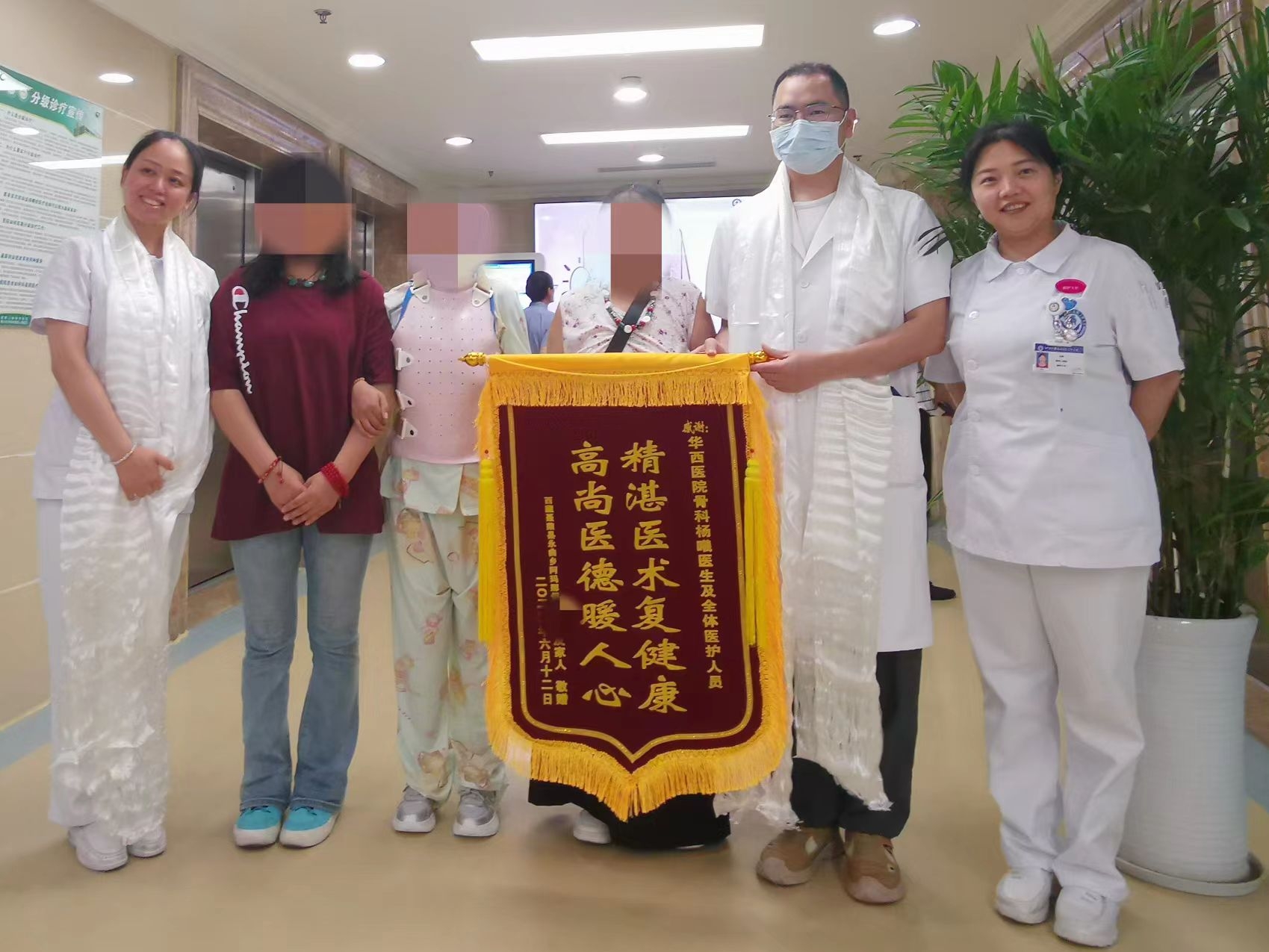 近日,我院骨科杨曦副教授团队为一名来自西藏聂荣县永曲乡患者完成重度僵硬型脊柱侧凸畸形头...