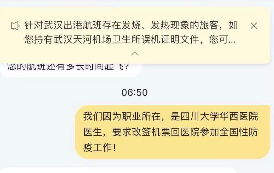 刘世喜主任在了解到疫情防控相关情况后,身在外地的他毅然在第一时间改签机票返回成都,坚守在岗位上,组织大家一起积极开展全面抗疫工作。在提交改签理由时,他写到:“职责所在,我是四川大学华西医院医生,要求改签机票回医院参加全国性防疫工作!”字字铿锵有力,句句掷地有声!