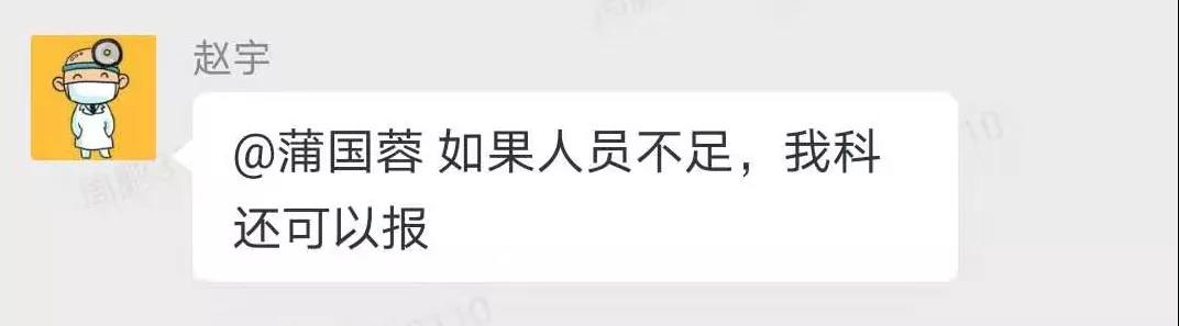 1月22日,当我科赵宇副主任在科室青年群里说到“发热门诊需要支援”,一群年轻医生积极回应、踊跃报名。