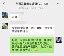 邹剑副主任接到学校关于疫情爆发期间学生管理工作的指示后,立即联系我科研究生班主任任建君博士后,一起对我科学生的动态及健康、安全情况进行逐一排查并详细记录,尽心尽力为每一位学生的安全保驾护航。他还温暖的安抚大家的焦虑情绪,鼓励大家在做好防护、保护好自己的同时,以积极正面的心态对待疫情。