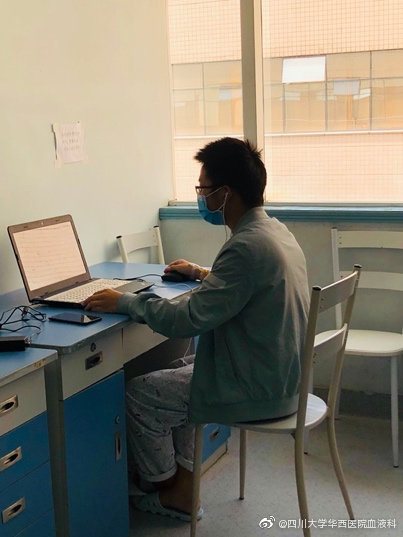 6月9日上午10点半,四川大学华西医院血液内科的网络会诊办公室正在进行一场特殊的毕业论文答辩。 答辩人小晖(化名)是一名四川轻化工大学自动化专业的大四学生;而陪伴他答辩的听众,不仅有他的母亲,还有一群医护人员。