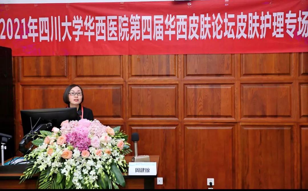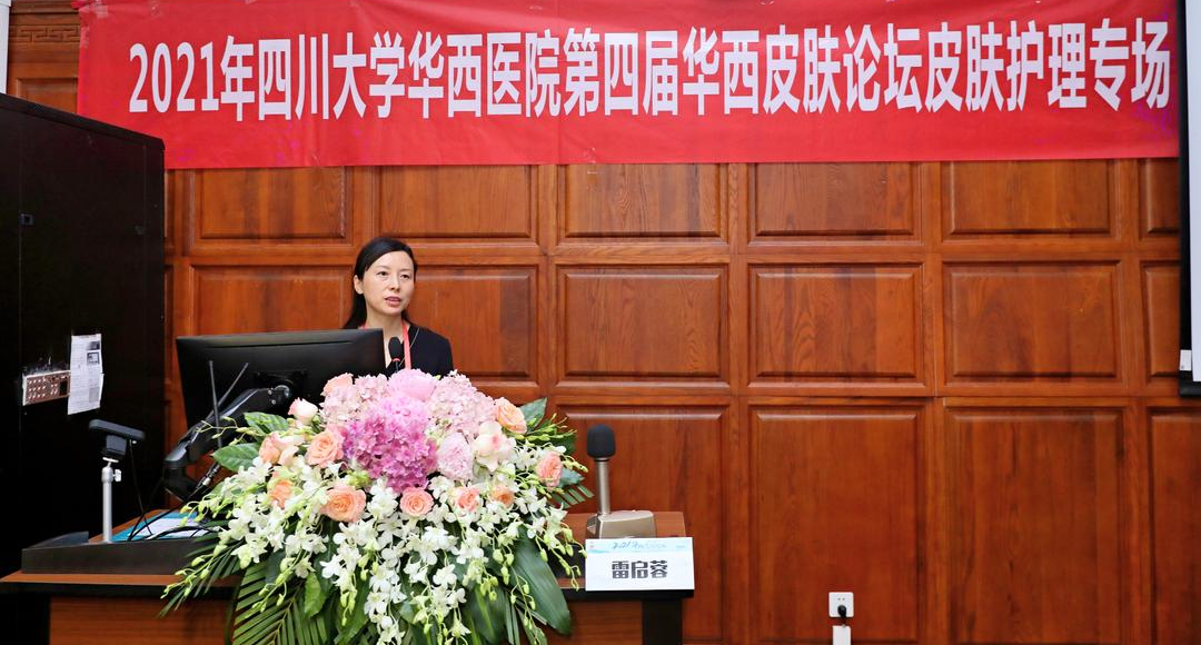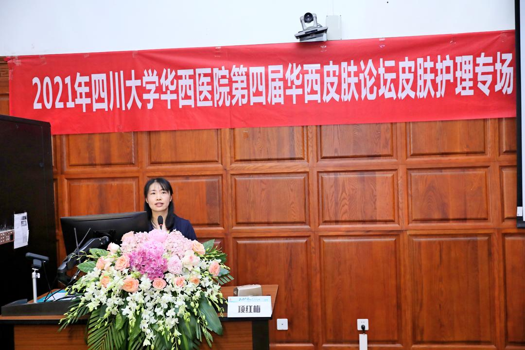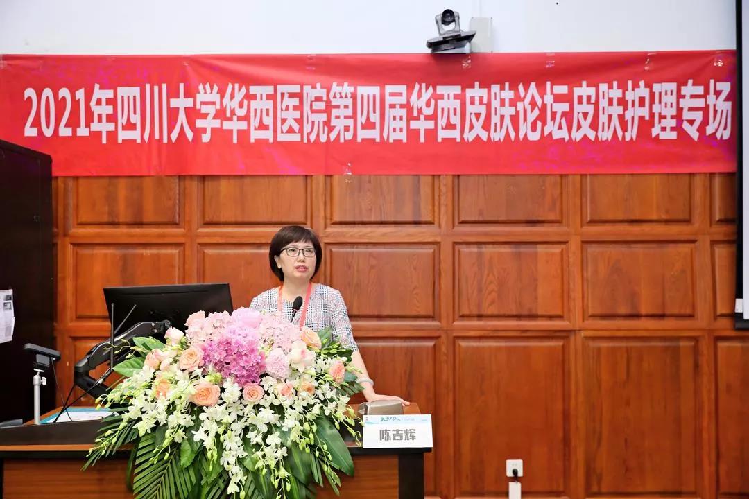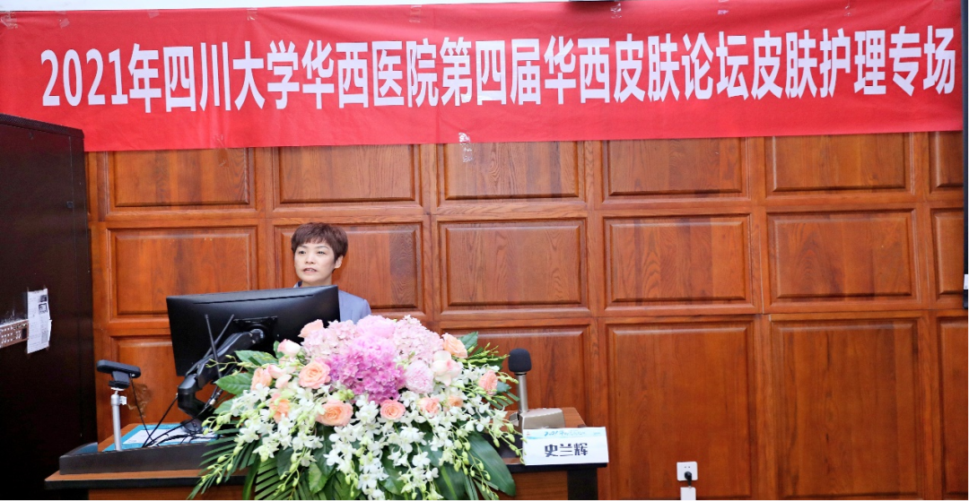 本次会议由四川大学华西医院皮肤性病科任丽副护士长主持。四川大学华西医院护理部黄浩副主任致开幕辞,黄浩教授首先对各位参会的老师表示欢迎,对各位皮肤护理人员的辛勤工作表示肯定,她表示:随着大环境的改变,人们对皮肤护理有了更大、更高的需求,皮肤科护理人员进而拥有更大的平台,最后黄主任期望皮肤护理工作能越办越好,为人们带来美丽、带来健康。