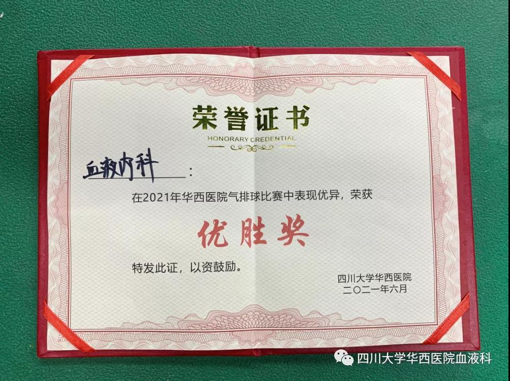 2、血液科青年职工参与“永远跟党走”全院气排球比赛荣获优胜奖。