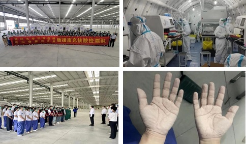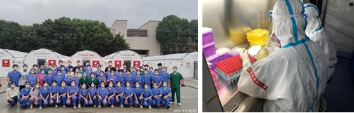 9月1日上午,华西医院接到启用位于温江的华西气膜方舱实验室的紧急任务,尚处于隔离期的援海南医疗队员周易、巫丽娟,以及王旻晋、陈思、黄学东、赵安江、张为利、蒙立业等共计8名实验医学科员工加入华西医院第一支成都“8•25”本土疫情气膜方舱实验室核酸检测医疗队。9月2日,实验医学科又派出庞良生、陈姣、魏彬、张禾及沈陈兰5名员工出征东部新区核酸检测医疗队,共同完成本土全域全员核酸检测任务。