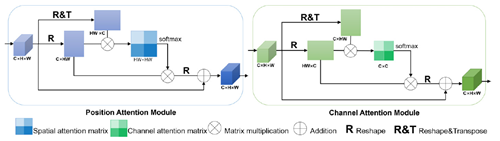 图2:嵌入式类UNet网络,包括六个剩余U块和一个双注意模块(DAM)