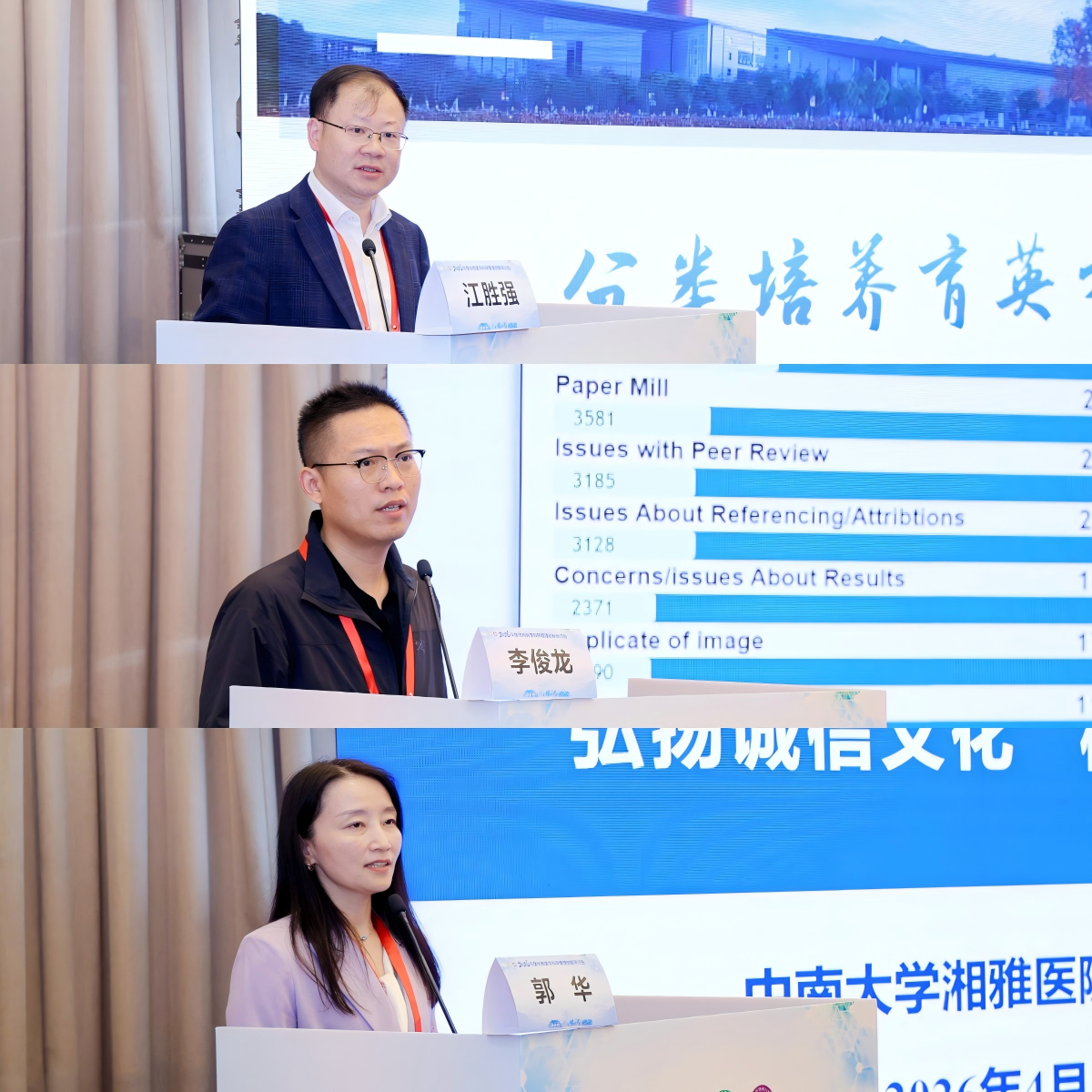 主题演讲环节,报告内容详实,见解深刻。南京医科大学江胜强教授以“扬学科特色,拓发展新局”为题,分享学科建设与科研管理融合的实践经验;重庆医科大学附属第一医院李俊龙教授聚焦科研数据治理,介绍区块链赋能的全生命周期科研数据管理新范式;中南大学湘雅医院郭华教授围绕科研诚信建设,探讨长效管理机制的构建路径,为参会者带来科研管理创新的全新启发。