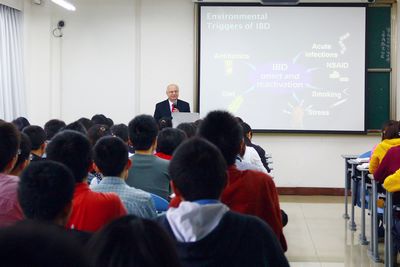 近日,消化系统整合临床课程教学改革又出新举措——受消化系统整合课程指导教授唐承薇主任的邀请,两位消化学界的国际一流专家先后登上临床医学五、八年制学生讲台,以高远的学术视野、深入浅出的授课技巧给我院师生们留下深刻的印象。
