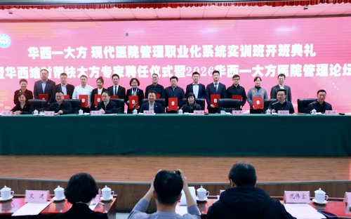 3月18日,华西—大方现代医院管理职业化系统实训班开班典礼暨华西结对帮扶大方专家聘任仪式在大方县人民医院红旗院区举行。农工党贵州省委副主委陆华,毕节市卫健局党组书记、局长赵伟,大方县委书记杨滨,我院党委书记程永忠、吴泓副院长出席会议。农工党贵州省委、毕节市、大方县有关部门负责同志,大方县人民医院党政领导班子及全体参训人员,以及我院相关人员参加会议。会议由大方县副县长胡荣华主持。