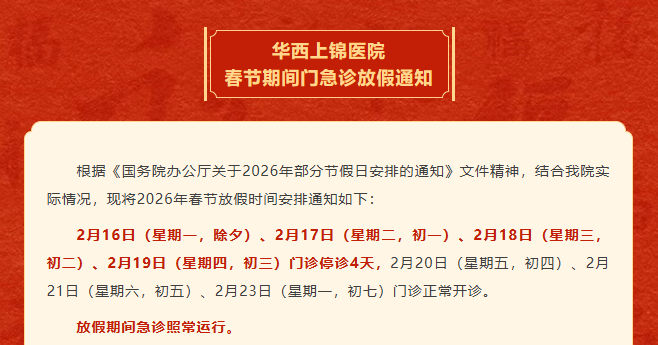 2月16日(星期一,除夕)、2月17日(星期二,初一)、2月18日(星期三,初二)、2月19日(星期四,初三)门诊停诊4天,2...