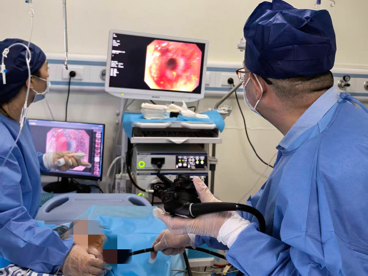 面对如此严峻的挑战,以消化内科杨正兵主任为核心的治疗团队迅速启动多学科协作机制,邀请麻醉手术中心王儒蓉主任一起讨论,为手术安全打下坚实基础。