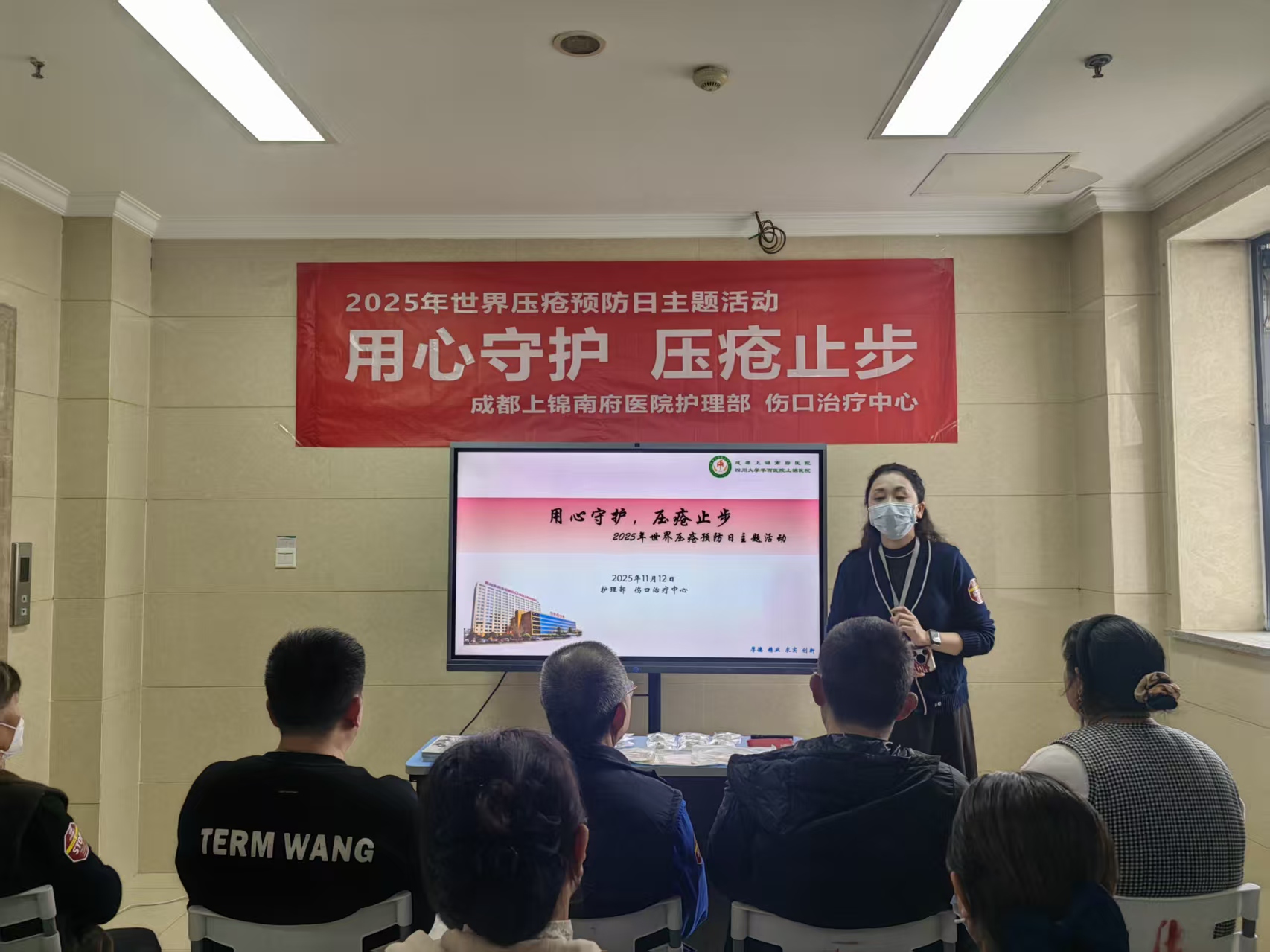 活动伊始,护理部及伤口治疗中心负责人余娜科长指出,压疮作为长期卧床、活动受限患者的常见并发症,不仅引发疼痛与感染风险,更会延长康复周期、增加医疗负担,而家属的科学照护与患者的主动配合,是压疮预防体系中不可或缺的环节,希望通过本次活动搭建沟通桥梁,进一步提升患者家属与护理人员对压疮防治的重视度。
