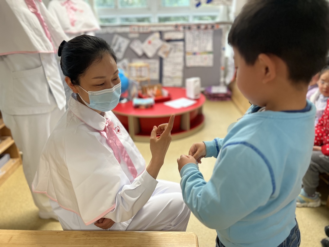 由于幼儿园小朋友们的年龄特点,志愿者张莉军老师从异物卡喉怎么办、海姆立克法的实践指南、烫伤烧伤、以及如何正确使用创可贴几个方面给二十八幼的老师以及宝宝们进行了通俗易懂的讲解,同时为了使活动更加具有趣味性,志愿者们当场做了示范,充分调动了孩子们的积极性,每位小朋友都学会了正确使用创口贴,陈秒护士长还分享了身边急救的真人真事,老师及同学们听得津津有味,现场互动气氛非常活跃。