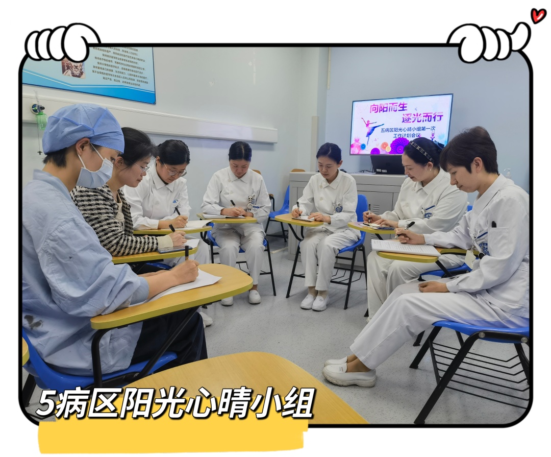 确立五病区阳光心晴小组组织架构:经过组员自荐互荐,组长正式任命组织委员、质控委员、宣传委员、小组秘书等。