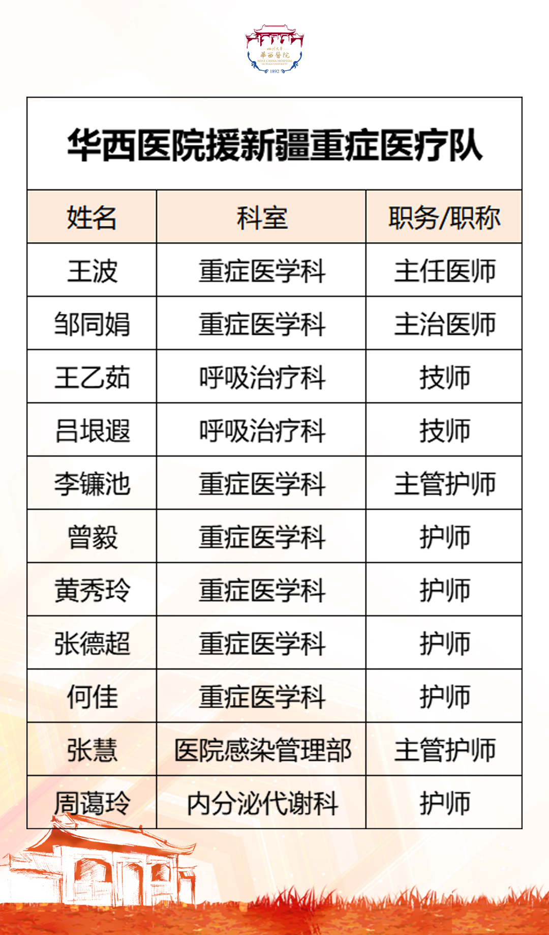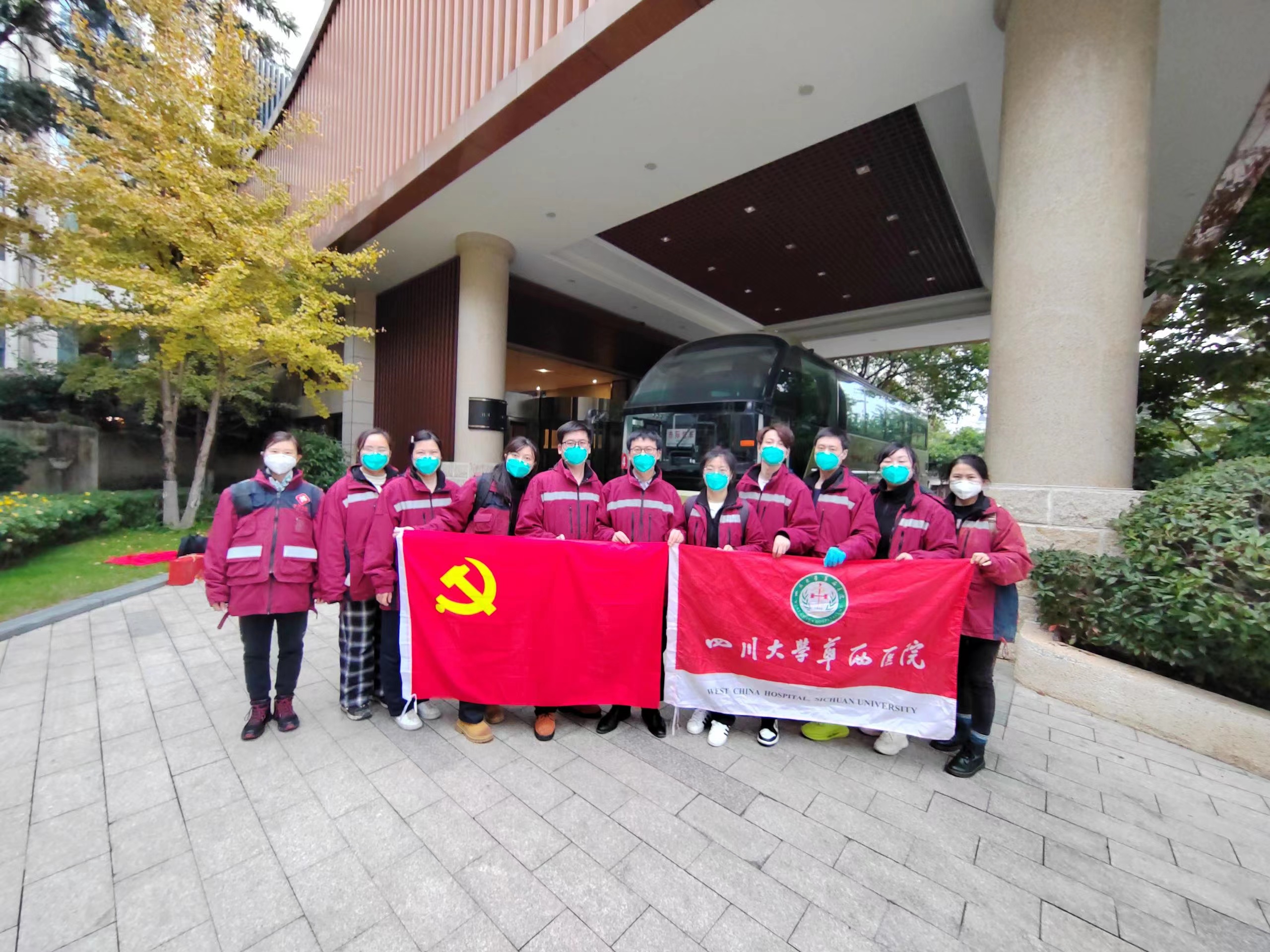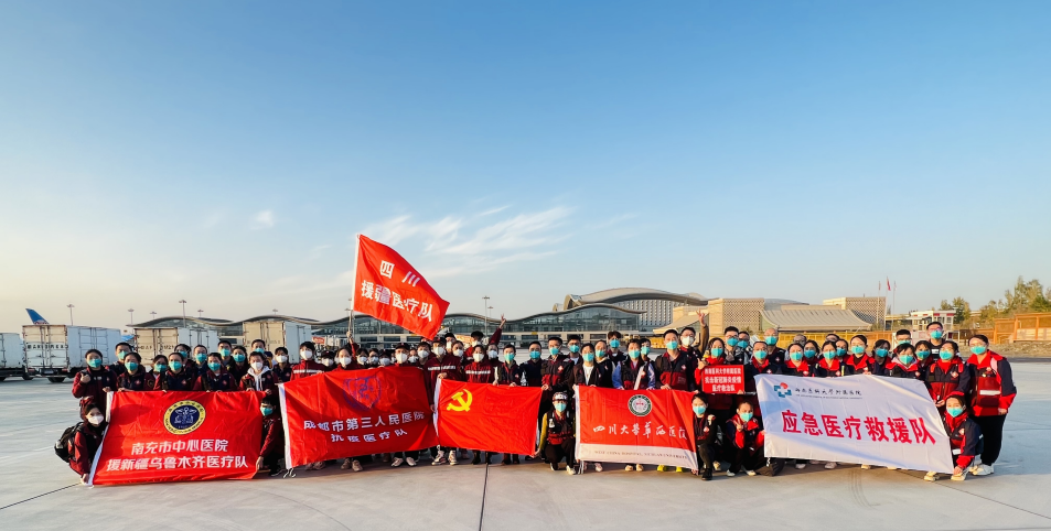 2022年10月15日,根据国务院应对新型冠状病毒肺炎疫情联防联控机制(医疗救治组)要求,四川援新疆重症医疗队紧急奔赴新疆乌鲁木齐市参加新冠重症患者救治工作。华西医院也第一时间派出重症医学科、呼吸治疗科、内分泌代谢科以及医院感染管理部等科室11名医护技人员前往乌鲁木齐。