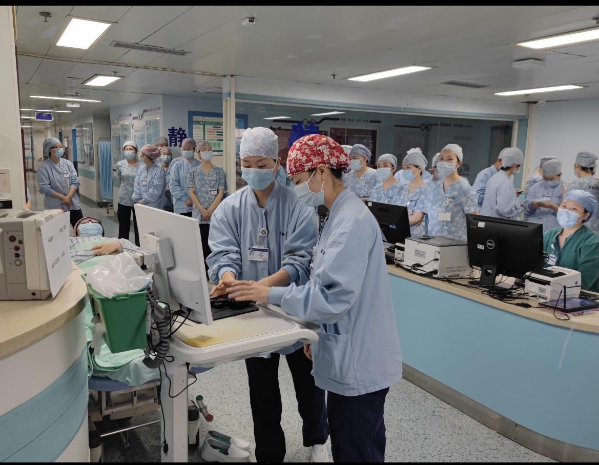 2023年3月31日,四病区第13护理单元(ICU)杨雪琴护理组组织以信息系统发生故障为主题的应急预案。
