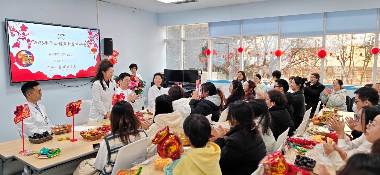 近日,为进一步加强对本科实习生的关心关爱,四川大学华西医院超声医学科精心组织了学生新春茶话会,师生欢聚一堂,在轻松温馨的氛围中共迎新春佳节。